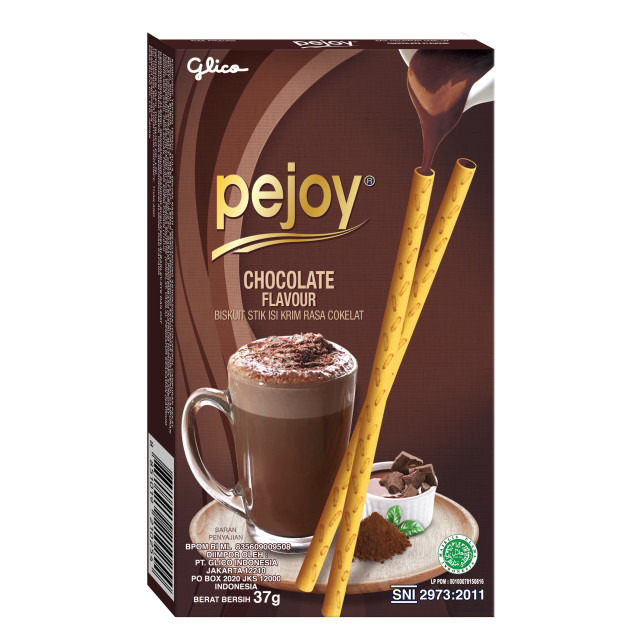 Masih satu keluarga dengan Pocky, brand Pejoy ini terinspirasi dari bentuk Pocky yang dibalik. Dimana coklatnya berada di dalam dan bisa dilihat bahwa coklatnya full. Lezatnya Pejoy membuat kita relax setelah melakukan seluruh pekerjaan dalam sehari.