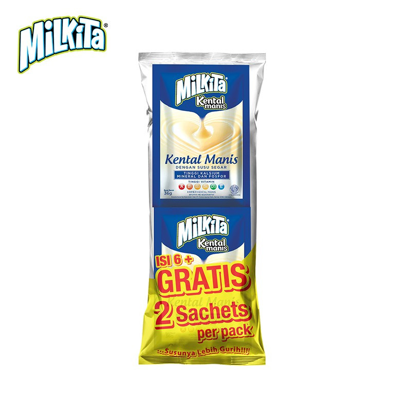 Milkita Kental Manis terbuat dengan susu segar berkualitas tinggi, kaya kandungan nutrisi, tinggi kalsium, fosfor juga tinggi vitamin. Campurkan Milkita Kental Manis pada minuman atau tambahan makanan anda untuk melengkapi nutrisi keluarga sehari – hari. Milkita Kental Manis dapat dikonsumsi untuk segala usia.