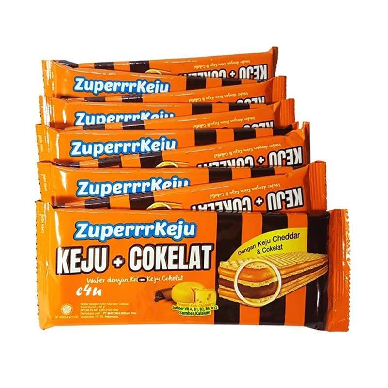Triple layered wafer kombinasi cokelat dan keju yang enak
