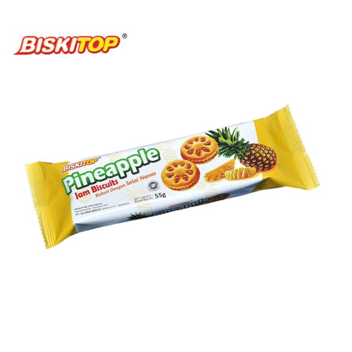 Biskitop Jam Biscuits 55gr - Pineapple merupakan biskuit dengan selai nanas, cocok untuk segala suasana apalagi di hari lebaran untuk hantaran keluarga ,sahabat dan lain-lain.