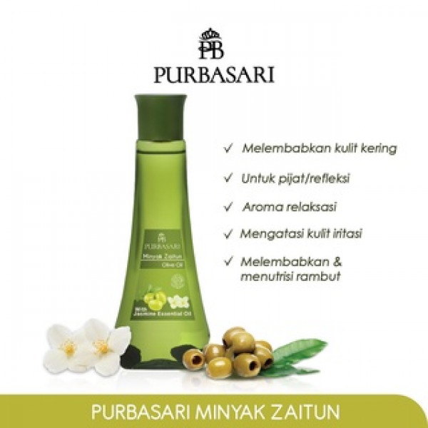 Purbasari Minyak Zaitun mengandung esensial Jasmine Oil yang dapat memberikan efek relaksasi, dipadu dengan biji mojokeling dan multivitamin mampu menjaga agar kulit tetap halus, lembut dan tampak sehat.
