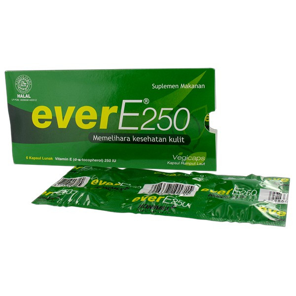 EverE250 bersifat sebagai antioksidan yang berfungsi meredam efek radikal bebas. everE250 menggunakan kapsul lunak Vegicaps yang terbuat dari bahan rumput laut sehingga cocok digunakan oleh vegetarian.