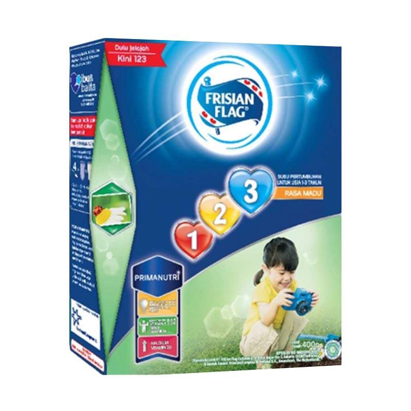 Frisian Flag Jelajah 123 Madu Susu Formula Anak [400 g], hadir untuk anak berusia 1-3 tahun yang sedang dalam masa belajar dan menjelajah. Masa yang diisi dengan belajar berjalan, berbicara, dan mengeksplorasi lingkungan sekitarnya. Susu formula Frisian Flag ini bukanlah susu pengganti ASI yang merupakan asupan nutrisi utama pada masa awal pertumbuhan, tetapi dapat menjadi nutrisi tambahan yang baik bagi si kecil.