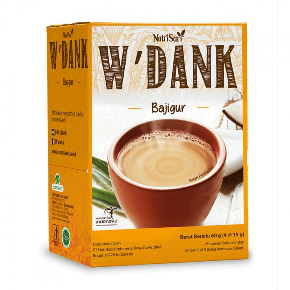 BAJIGUR terbuat dari pandan, gula merah dan santan yang gurih dan nikmat. Kehangatan NutriSari W'DANK Bajigur sangat cocok dinikmati di malam hari atau saat cuaca dingin. Nikmati cita rasa NutriSari W'DANK Bajigur yang khas dengan harumnya aroma daun pandan.