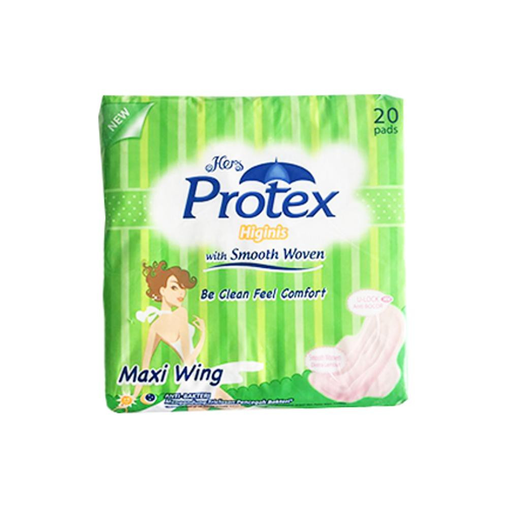 Hers Protex Higinis mengandung Triclosan pencegah bakteri dan anti iritasi. Dengan bahan khusus yang menyerap cairan secara langsung dan cepat, sehingga permukaan lebih kering anti bocor kesamping lebih aman dan nyaman. Garis pelindungnya mencegah pembalut berkerut ke tengah dan efektif mencegah cairan tembus ke samping. Memiliki daya serap tinggi, cepat mengikat cairan menjadi jelly, menjaga permukaan pembalut tetap kering dan lembut.