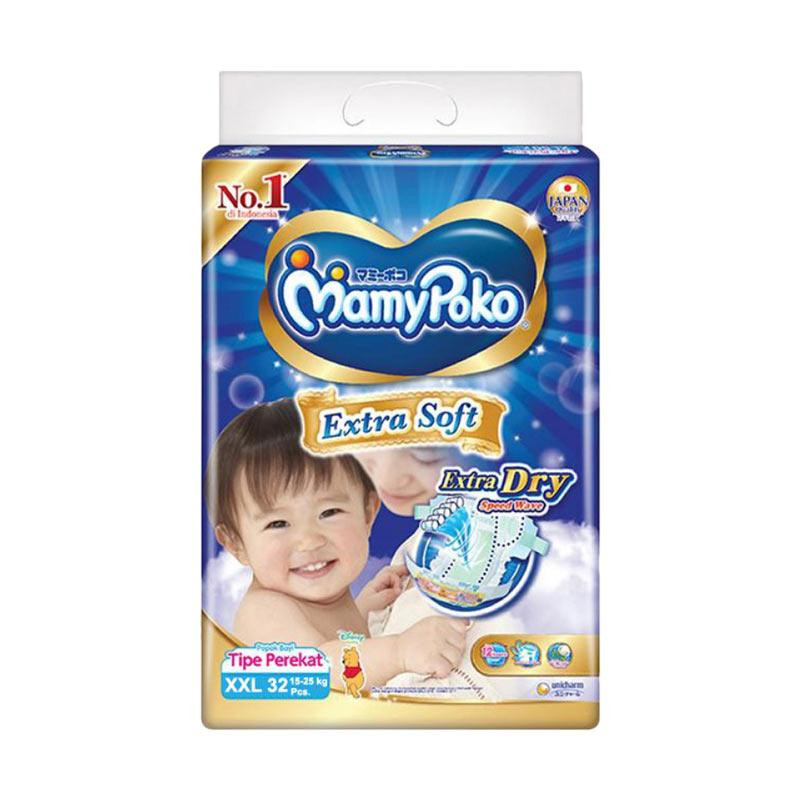 MamyPoko Open Extra Dry Popok Bayi [XXL/ 32 Pcs] adalah popok premium dari Mamy Poko untuk baby yang baru lahir. Popok ini lebih bagus daripada Mamy Poko Ekonomis. Popok ini untuk anak dengan berat 15-25 kg. Terasa selembut kapas sehingga membuat permukaan lembut dan sangat nyaman digunakan. Daya serap yang tingga sehingga dapat dipakai lebih lama