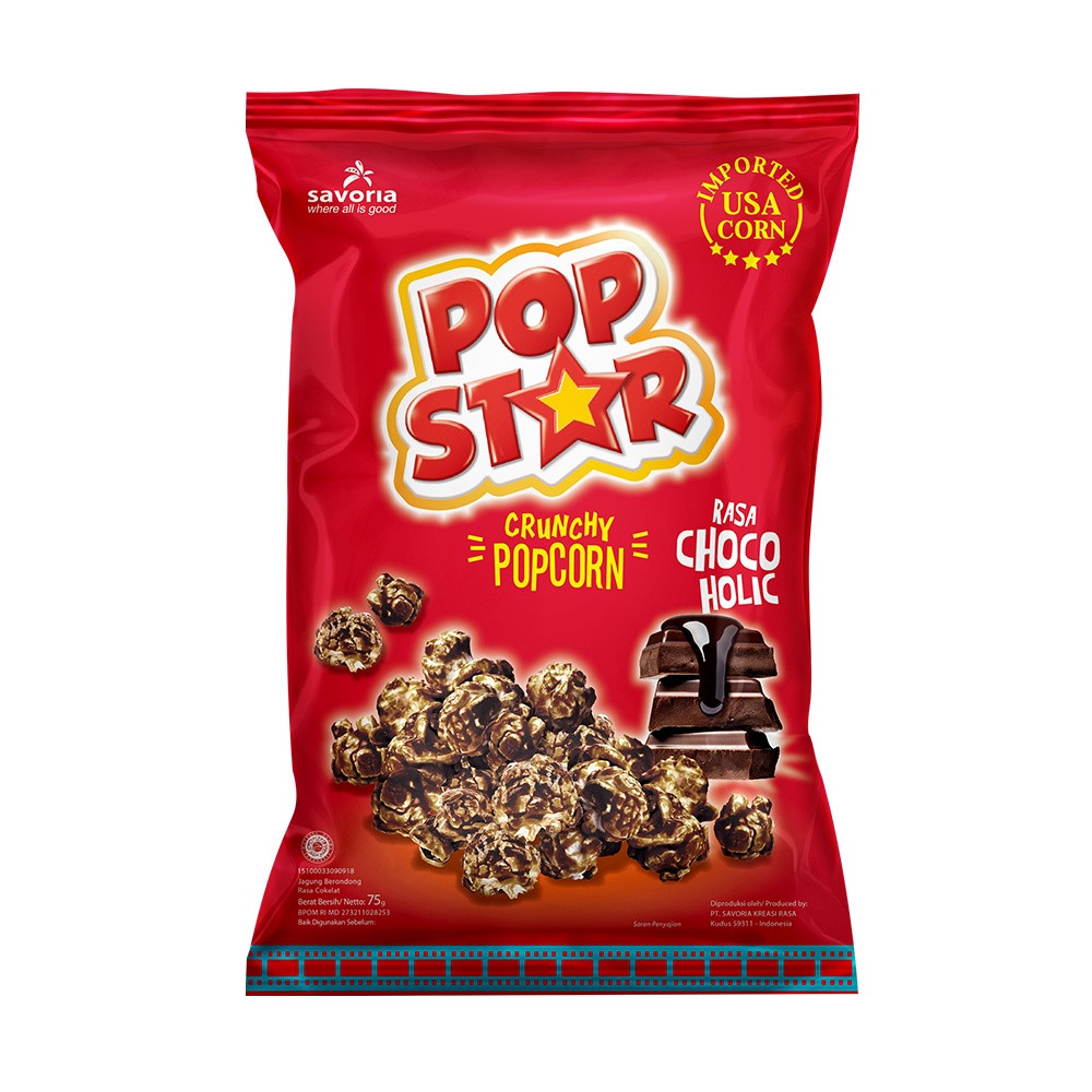 "POPSTAR Crunchy Popcorn Cheeseliscious 75gr Snack Cemilan Rasa Coklat