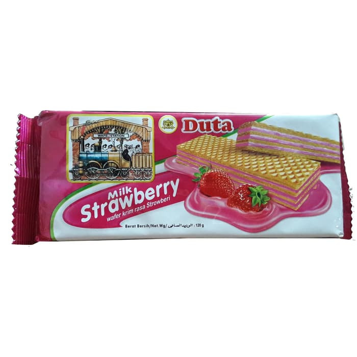 Duta wafer krim rasa strawberry istimewa dengan 4 lapis wafer renyah dipadukan dengan lapisan krim lembut yang lezat di setiap gigitan.