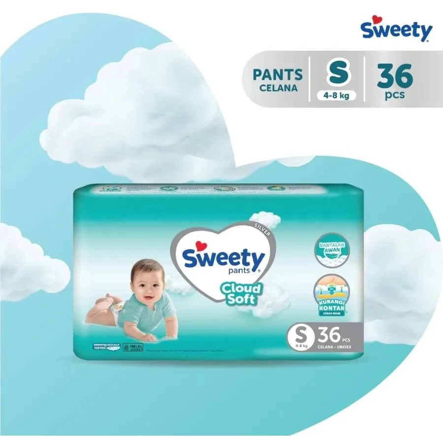 Sweety Silver Pants Popok Bayi [Size S/ 32 pcs], popok bayi berbahan berkualitas yang didesain sesuai dengan bentuk tubuh si kecil dengan dilengkapi karet lembut untuk mencegah ruam kulit kemerahan. Popok ini memiliki sistem Double Leak Guard untuk mencegah resiko kebocoran samping dan Lock System untuk menyerap dengan cepat dan tetap kering. Lapisan atasnya juga dilengkapi dengan ekstrak lidah buaya agar kulit tidak teriritasi dan kering.