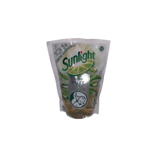 Sunlight Extra Pure mengandung jeruk nipis asli, diperkaya dengan ekstrak aloe vera dan garam mineral alami. Formulasinya dilengkapi minyak esensial alami tanpa pewarna, paraben dan fosfat. Produk ini sudah teruji secara dermatologi dan cocok untuk membersihkan peralatan makan dan minum bayi, buah dan sayuran. Formula sabun cuci piring Sunlight Extra Pure membersihkan lemak membandel pada piring untuk hasil bersih berkilau.