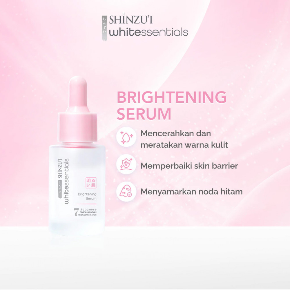 ShinzuiWhitessentials Brightening Serum dengan formula 7 Japanese Skinessential mencerahkan dan meratakan kulit wajah, memperbaiki skin barrier dan menyamarkan noda hitam