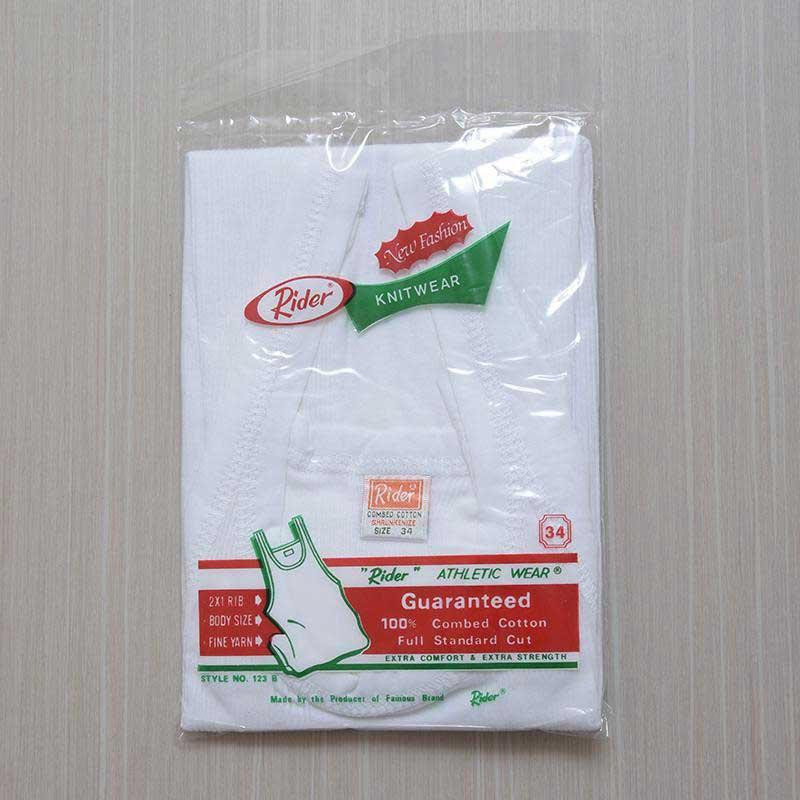Rider Knitwear Singlet 123 B Size 34. Terbuat dari bahan katun bergaris yang berkualitas, sehingga dapat menyerap keringat dan nyaman digunakan untuk sehari-hari.