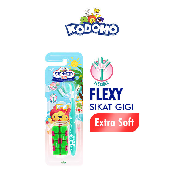 Kodomo tootbrush FLEXY dirancang khusus dengan teknologi Jepang dengan leher sikat yang lentur untuk mengurangi tekanan pada gigi dan gusi anak, efektif membersihkan dan nyaman digunakan. Bulu sikat extra halus dan lembut cocok di gusi anak dan dapat menjangkau ke sela-sela gigi anak.