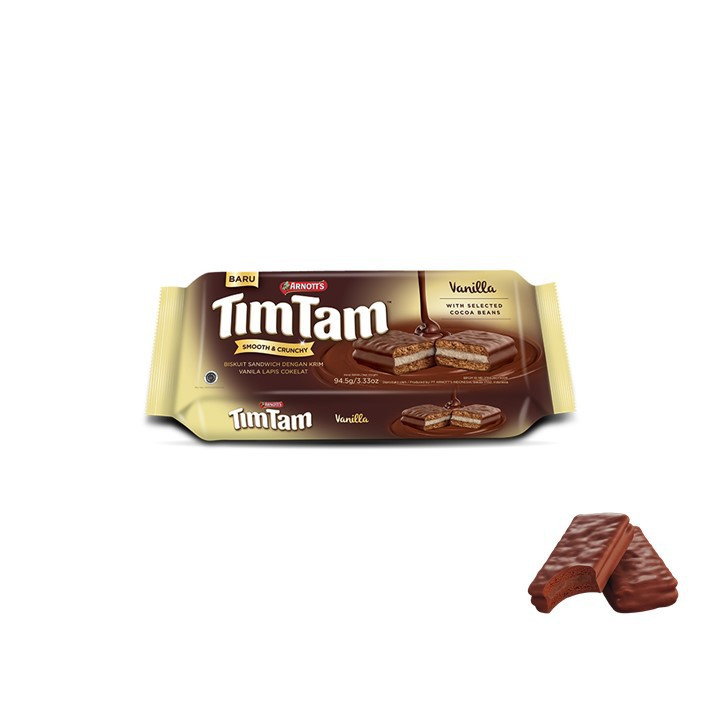 Tim Tam Atlas Choco Vanilla 81 gr adalah biskuit dengan kombinasi 3 lapisan yang sempurna - krim lembut di antara dua biskuit renyah, dilapisi cokelat nan nikmat. Krim Vanilla yang terbuat dari bahan-bahan berkualitas membuat rasa lebih enak dan menggoda di mulut. Kelezatannya begitu terasa sampai gigitan terakhir. Lebih nikmat lagi, jika dinikmati bersama teh atau kopi.